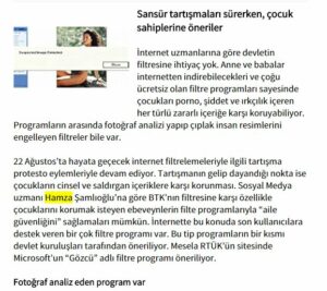 Gazete Vatan’ın “Devlet Filtresine Gerek Yok” başlıklı haberinde devlet sansürü ve çocukların İnternet dünyasından korunması ile ilgili olarak röportajıma ve görüşlerime yer verilmiştir.