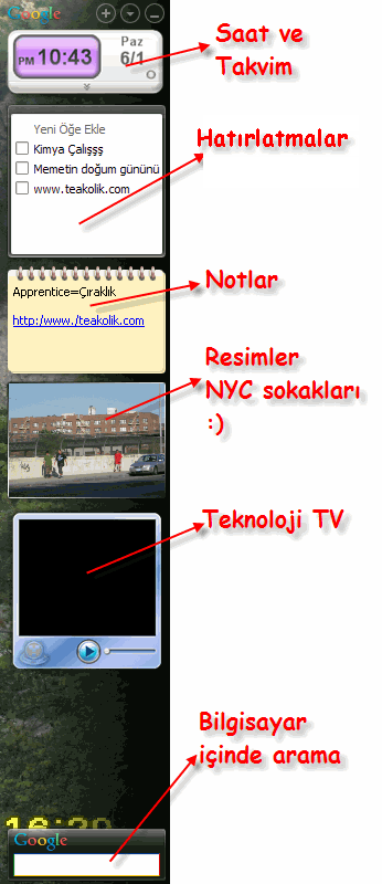 Sanırım şu öğrenci milletinin hepsi aynı. Ders çalışmamak için elinden geleni yapar. Ya uyur, ya yemek yer, ya da gerekli olduğunu düşündüğü başka bir şey yapar. Google ile ne mi alakası var bu yazdıklarımın aslında hiç bir alakası yok. Tamamen benle alakalı. Kimya ve uzaktan eğitim adlı sınavlarım var ders çalışmam lazım ama arkadaşımın masaüstünde farklı bir tasarım gördüm bu ne dedim google’nin masaüstü bileşeni (kenar çubuğu) dedi. Oooo süper görünüyor dedim ve kendi bilgisayarıma da yükledim. Yetmedi şimdi de size tanıtacağım. Ders çalışmam lazım ya onda. Yoksa anlatmaz uyurdum valla 😀 .