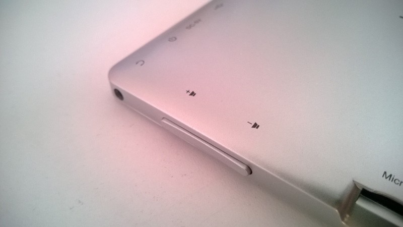 Sağ yan kenarını çevirdiğimizde 3,5mm kulaklık girişi ve ses tuşlarını görüyoruz. Sağ yanda dikkatlice bakarsanız bir de microSD kart yuvası konumlandırıldığını göreceksiniz. Bu yuva sayesinde cihazımıza ek olarak hafıza sağlayabiliyoruz.