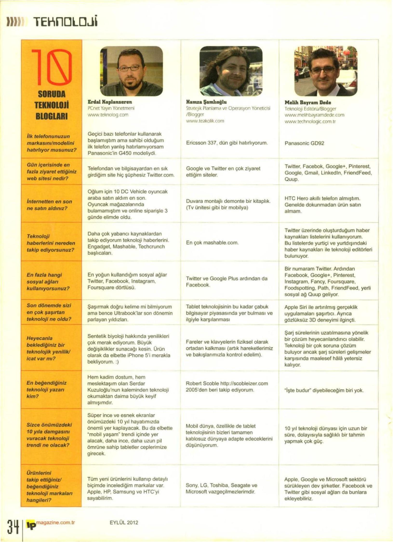 Marketing Türkiye’yle birlikte yayınlanan IP Dergisi, Teknoloji Blogger’ıyla konseptli bir haber içerisinde, 20.09.2012 tarihinde görüşlerime yer verdi.