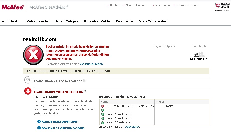 Mcafee, siteadvisor adini verdigi toolbar’i (ask toolbardan farksiz) yukletsinde bazi kullanicilar yada teakolikler yansin cok onemli degil!
