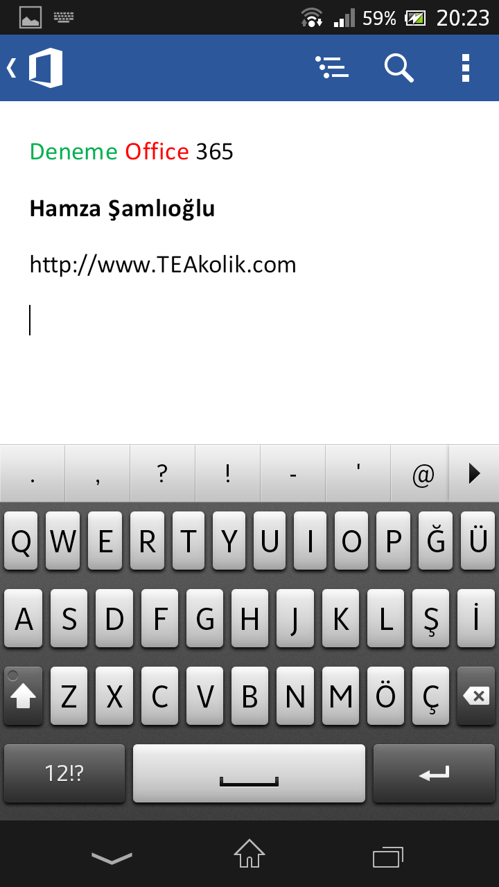 Office 365 aboneleri (ben aylık 14,99TL ödüyorum) herhangi bir ek ücret ödemeden, Android işletim sistemli telefonlarına Office Mobile for Android sürümünü kurabilirler!