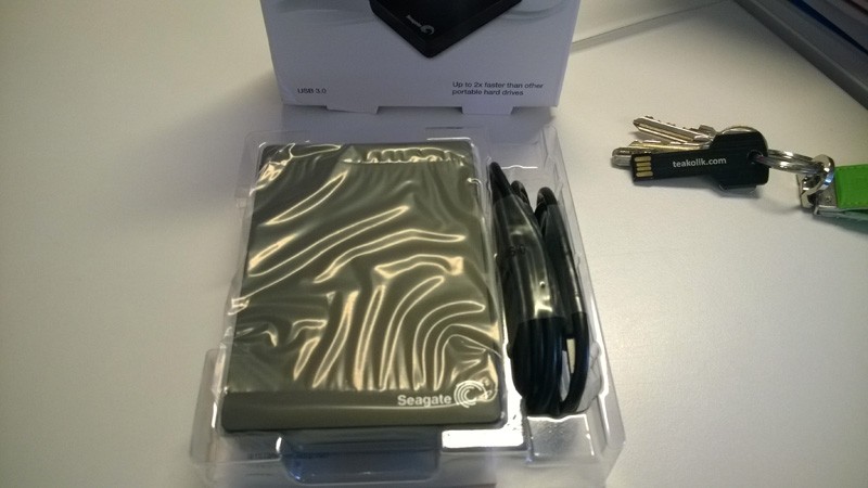 Küçük bir kutu olarak karşımıza gelen Backup Plus Fast ürünü içerisinde 2 adet 2,5 inçlik sabit disk yerleştirilmiş. Backup Plus Fast’un üstünde Seagate logosunu görüyoruz. Kapalı bir kutu olarak gelen cihazımızın USB 3.0 kablosu ile bilgisayarımıza bağlıyoruz.